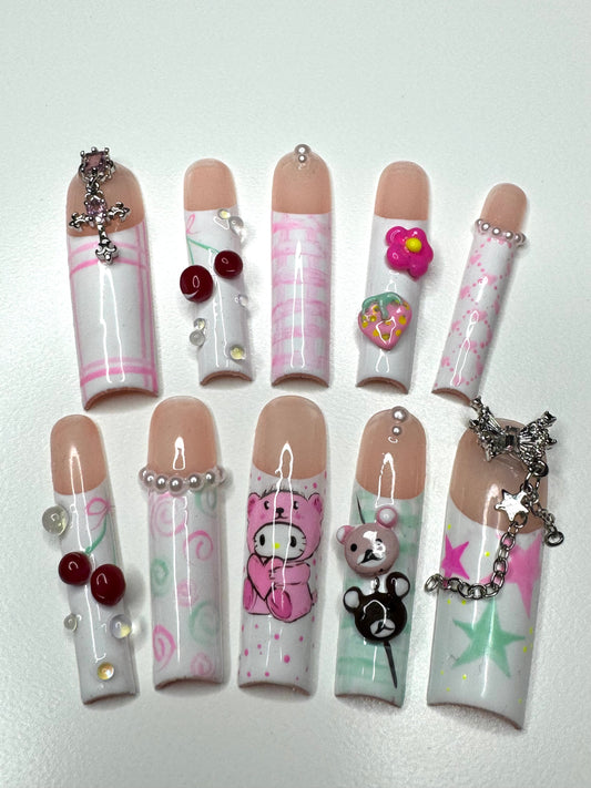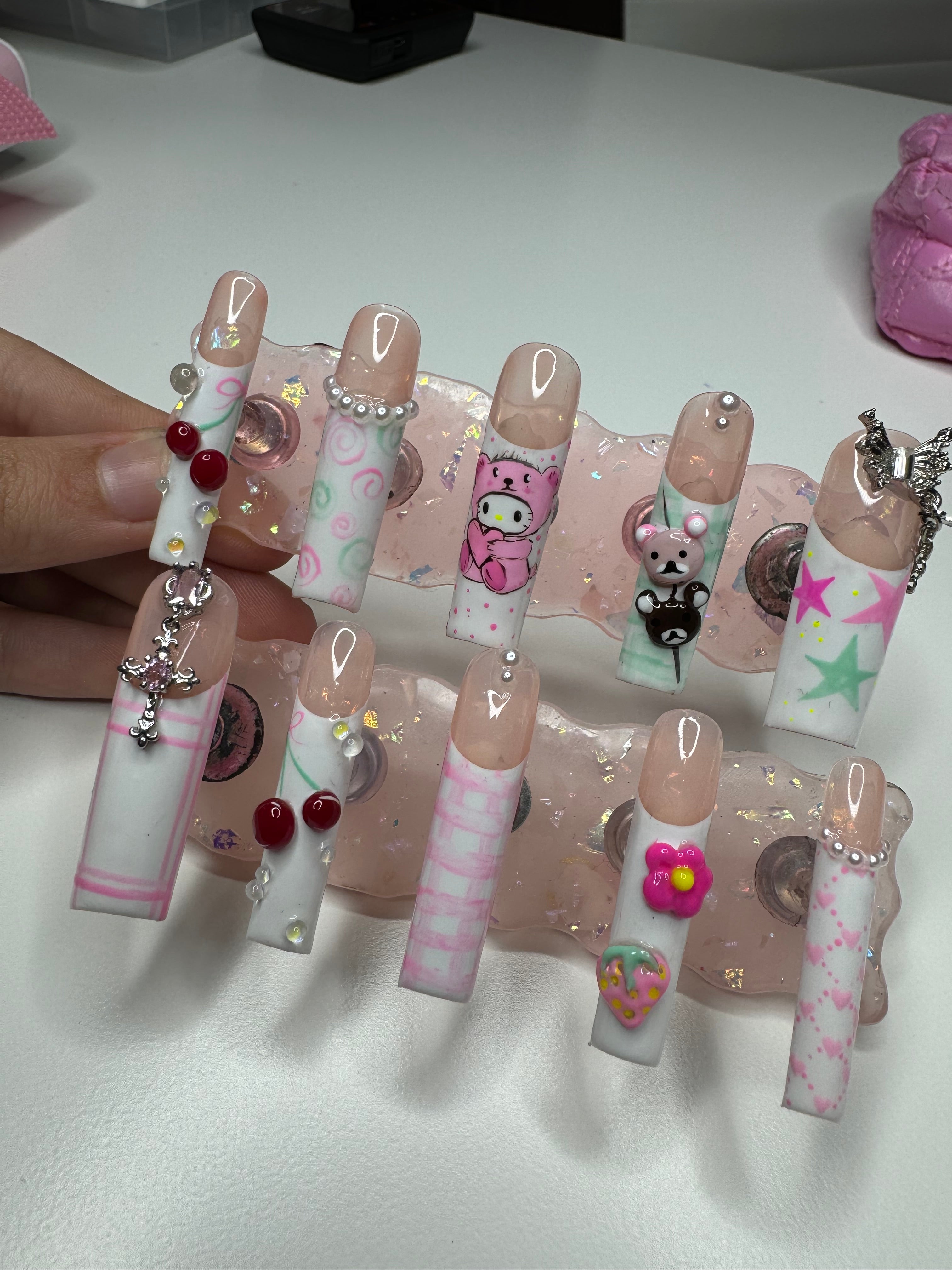 Experience the artistry of our Custom Press-On Nails service, where each set is meticulously hand-painted and tailored to your specific size, ensuring a perfect fit and a unique, one-of-a-kind masterpiece. Whether it's intricate logos, beloved anime characters, or any design you can dream of, your vision will be brought to life on these miniature canvases of creativity.